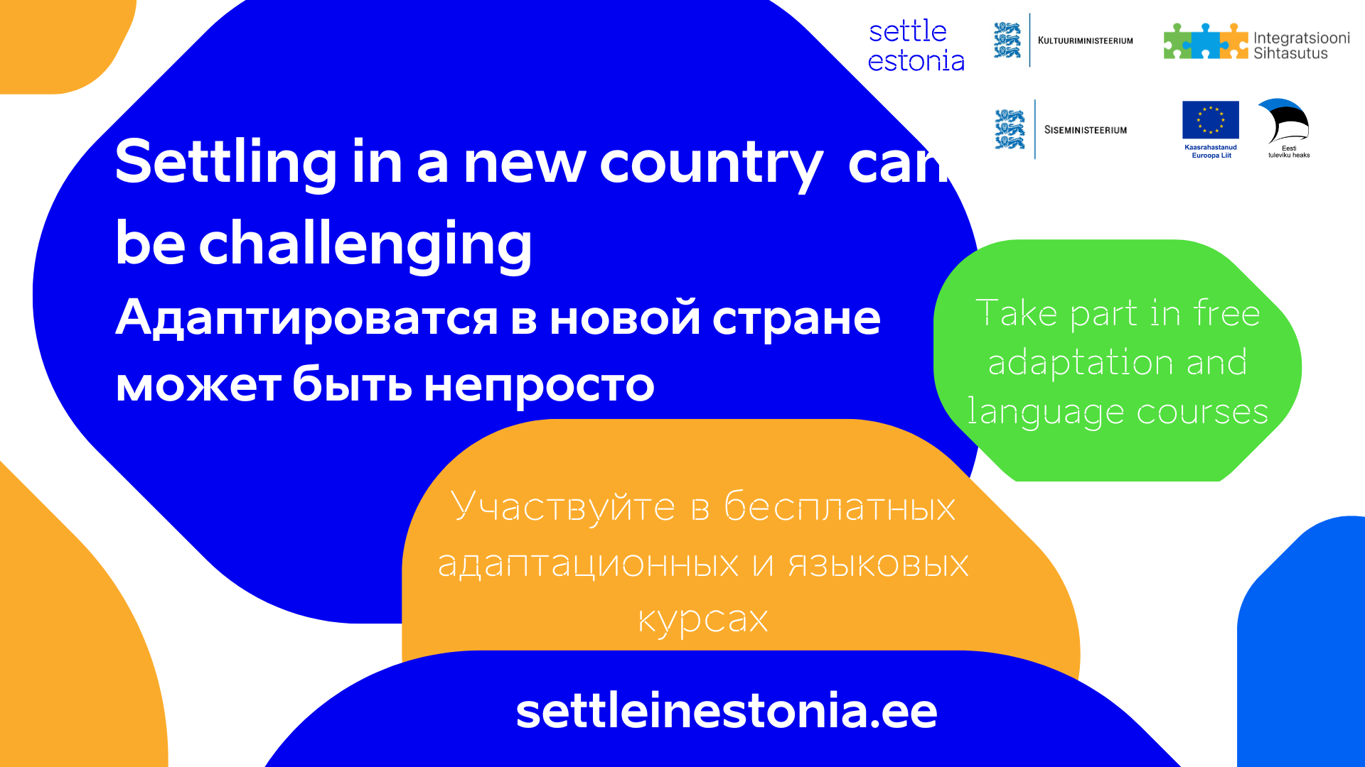 The adaptation programme is intended for adults who have stayed in Estonia on the basis of a residence permit or right of residence for less than five years from the moment of obtaining the initial residence permit or right of residence. The adaptation programme is co-funded by the European Union and state budget funds.