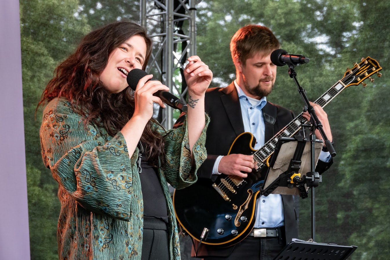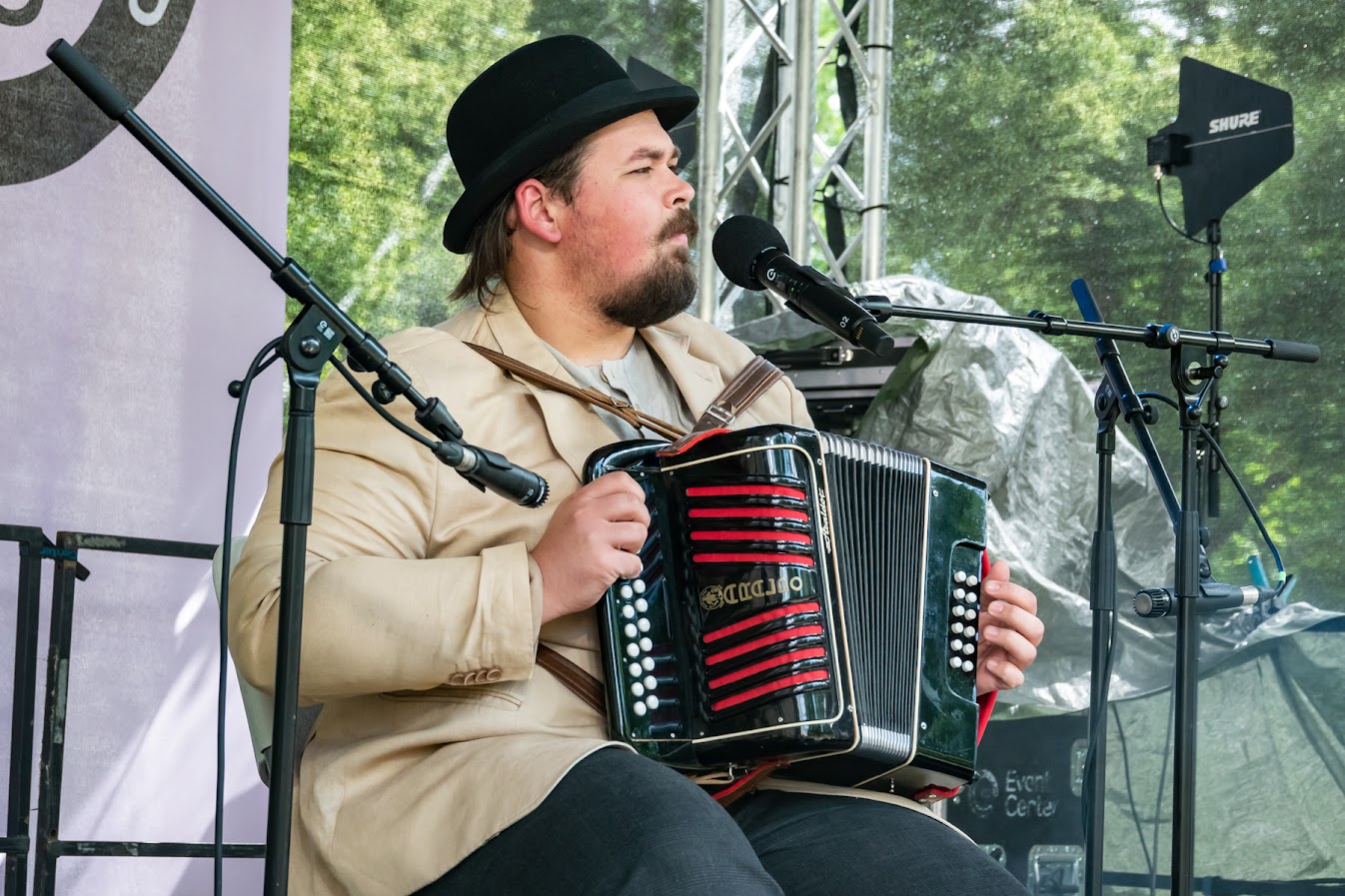 Toompeal Komandandi aias avatud laval võlusid külastajaid Orissaare ja Valjala Kannelnäpud, Saaremaa Simmanitantsuklubi ja karmoškaansambel Meite Moodi, Aasta küla pillimees 2023 Tõnu Eermann, Taritu meesansambel ja Simmu Mats lõõtsa ning lauluga. Esivanematelt päritud rahvarõivastes ja pillidega esitatud lauludele ja tantsudele järgnes jazz, millega paitasid meeli Pille-Rite Rei ja Kusti Lemba.